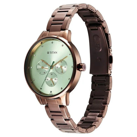NameTitan Razzle Dazzle Quartz Analog with Day and Date Green Dial Brown Stainless Steel Strap Watch For Women