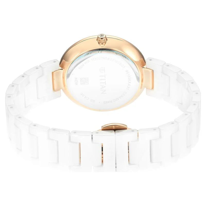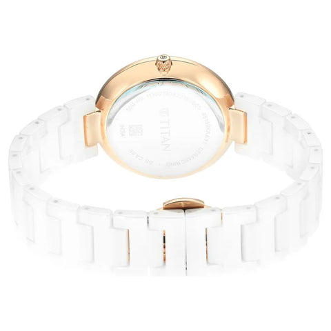 NameTitan Purple Ceramics White Dial Analog Ceramic Strap Watch For Women