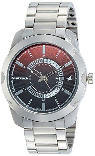 For a watch that celebrates EDM music, look no further than this Fastrack timepiece. This stainless steel strap, black dial watch is secured by a push type, spring-loaded mechanism. The white hands and indices on a red gradient dial base grab all the attention. The Fastrack logo on the face of the dial adds class to the watch. The 5 ATM water resistance, durable mineral glass cover and quartz analog precision ensure optimum functionality. With day and date movements, this watch takes on a whole new dimension of efficiency.