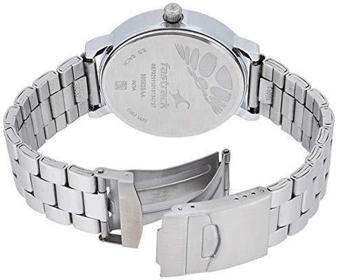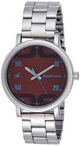 Fastrack bold brown dial silver strap men's wristwatch.