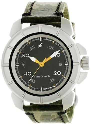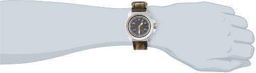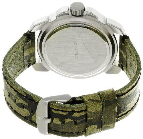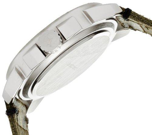 Inspired from the view scope barrel of a sniper rifle, this round case has a design inspired by bullets on the case top and the lugs and crown guard add a chunky rugged look to an otherwise simple timepiece. Available in a very differentiated camouflage patterned leather strap.