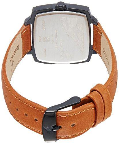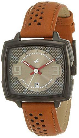 With a trendy design, this watch comes with a uniquely-shaped dial that is grey in colour. Arabic numerals on the 3rd and the 9th hourmarker positions and three hands in contrasting hues help to keep track of time. The watch also displays the date on the 6th hourmarker position. A brown leather strap with a perforated detail and a buckle clasp lets you to secure the watch with ease. This quartz watch has a warranty of one year and also has a water resistance of 3 ATM.