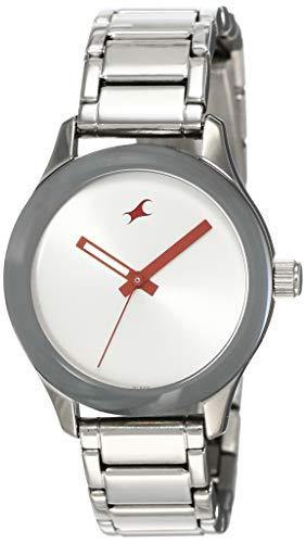 A solid stainless steel band lets you securely wear this Fastrack women's water resistant watch. Stainless steel is a very tough material and scratches from its surface can be easily polished and removed. With its deployment clasp, you can adjust the band to perfectly fit your wrist. This analog watch for women can be worn in wet and rainy conditions as it is waterproof. It features water resistance to a depth of 30m. Internal components of this watch are protected from shocks with a stainless steel back case. Along with this watch, you also get a nice looking Fastrack box to keep it. As it is battery powered, this quartz timepiece will reliably show you the precise time.