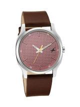 A trendy brown watch designed with a red mesh look on the dial. The 5 atm/ 50 m water resistance makes this watch the perfect choice. It features a leather strap, stainless steel back cover, high precision quartz analogue movement and is secured with clasp closure. The brass case dimensions are 42.20 x 46.50 x 7.70 mm. It comes with a warranty of 2 years. Pair this watch with your black solid t-shirt to make your look more appealing.