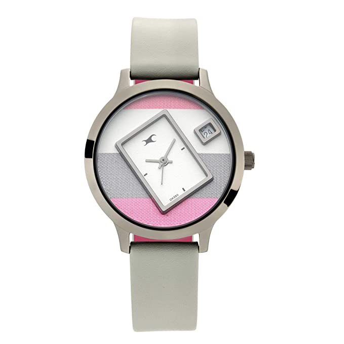 - NameFastrack Fit Outs Quartz Analog with Date Multicoloured Dial Leather Strap Watch for Girls