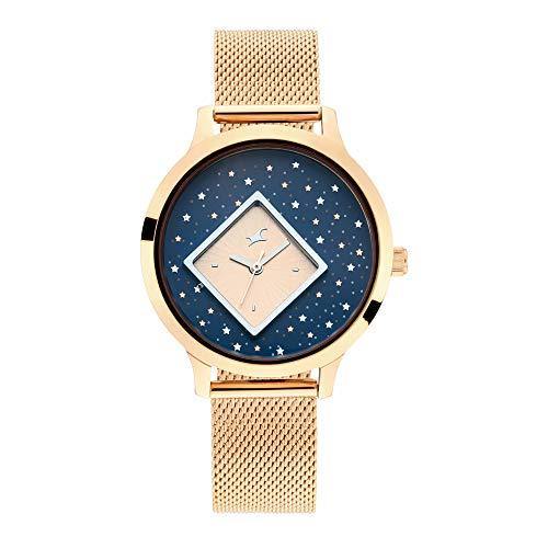 - Analog watch with brass case and mesh strap. 3 ATM water resistance.