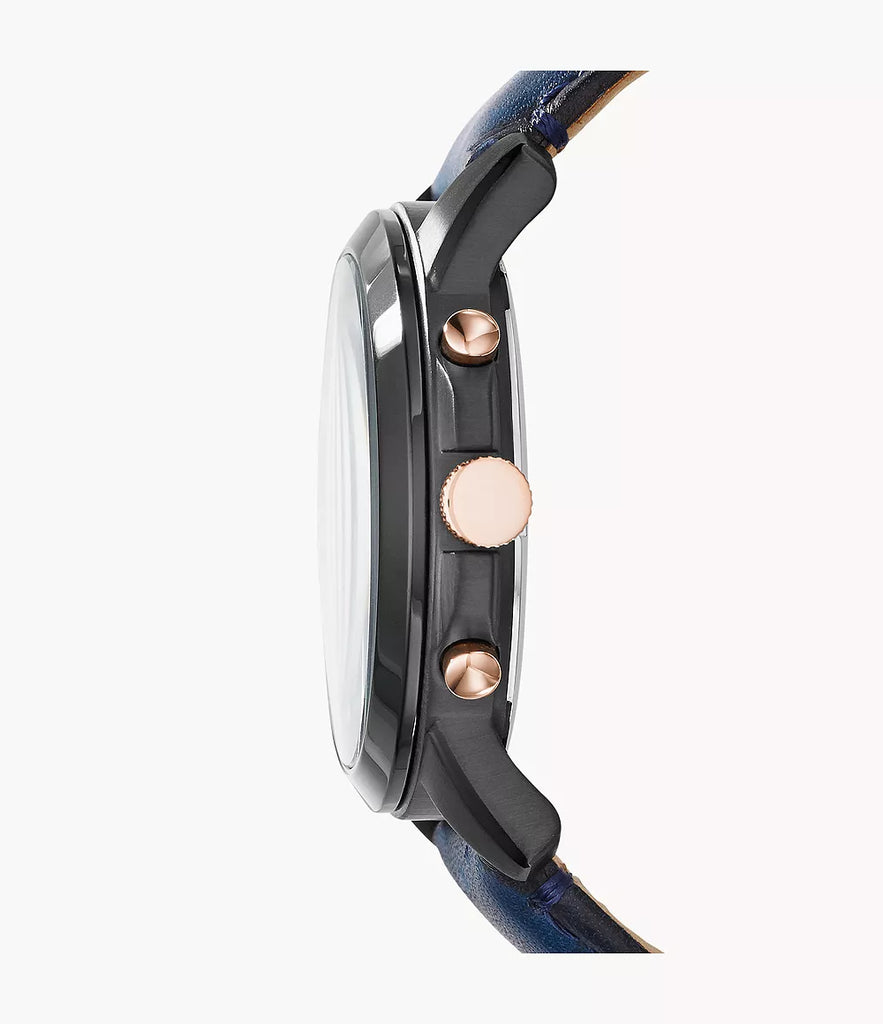 Sku: FS5061ICase Size: 44 mmMovement: Quartz ChronographPlatform: GrantStrap Material: Genuine LeatherStrap Colour: BlueCase Water Resistance: 5 ATMCase Material: Stainless SteelCase Colour: SmokeDial Colour: BlackStrap Fashion Colour: BlueInterchangeable Compatibility: 22 mmStrap Width: 22 mmClosure: Strap BuckleStrap Inner Circumference: 200 +/- 5 mmCrystal Type: MineralBattery Type: SR616SW