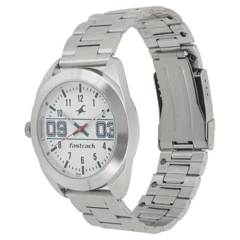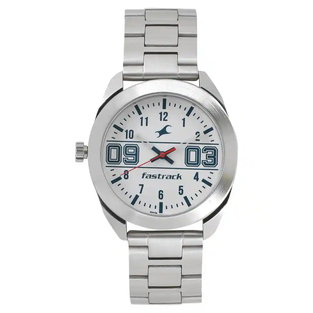 - Fastrack Varsity Quartz Analog Watch for Guys With White Dial Stainless Steel Strap
