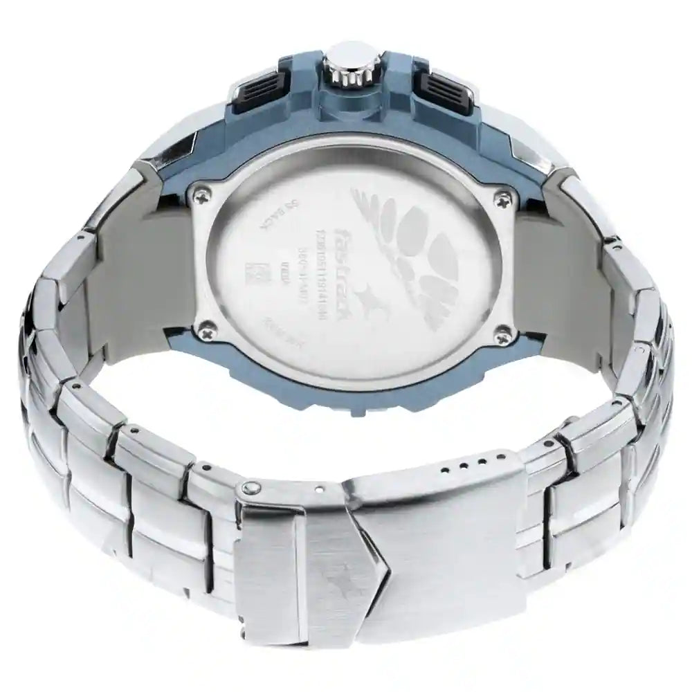 WARRANTY PERIOD12 MONTHSWARRANTY DETAILSTHIS WATCH OFFERS 12 MONTHS WARRANTY ON THE MOVEMENT FROM THE DATE OF PURCHASE.FUNCTIONANALOG DIGITALSTRAP MATERIALSTAINLESS STEELCOLLECTIONMEAN MACHINESWATER RESISTANCE5 ATMGENDERGUYSBRANDFASTRACKMOVEMENTQUARTZ DIGITALCASE SHAPEROUNDCASE MATERIALMETALSTRAP COLORSILVERGLASS MATERIALMINERAL GLASSLOCK MECHANISMCLASPCASE THICKNESS16.40 MMCASE LENGTH(6H-12H)57.00 MMCASE WIDTH(3H-9H)51.50 MMDIAL COLORBLACK