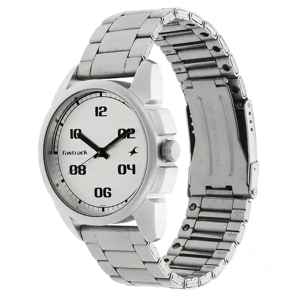 - Fastrack Quartz Analog Watch for Guys Silver Dial With Stainless Steel Strap