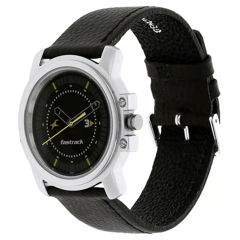 - Fastrack Quartz Analog Watch for Guys Black Dial With Leather Strap