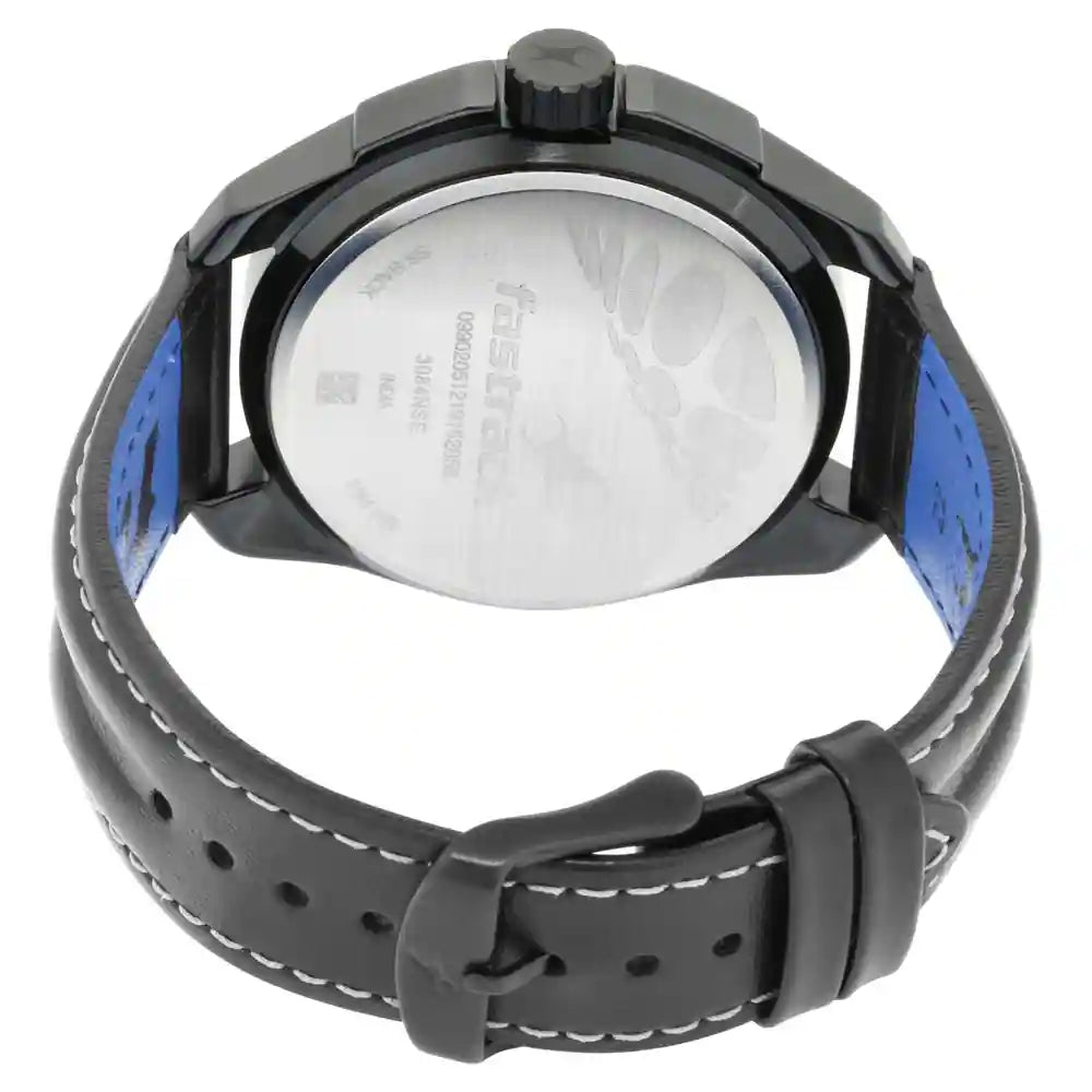- Fastrack Hitlist Quartz Analog with Day and Date Watch for Guys With Black Dial Leather Strap