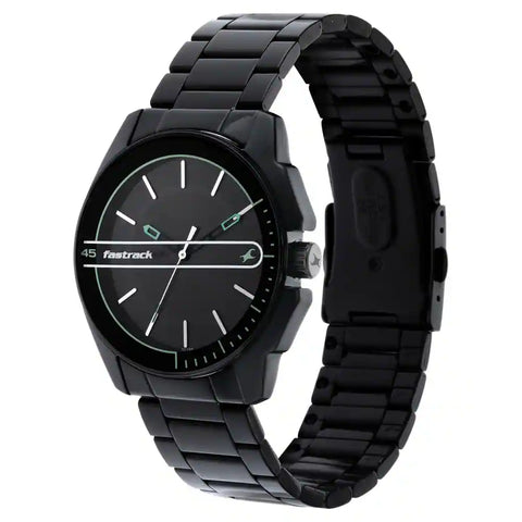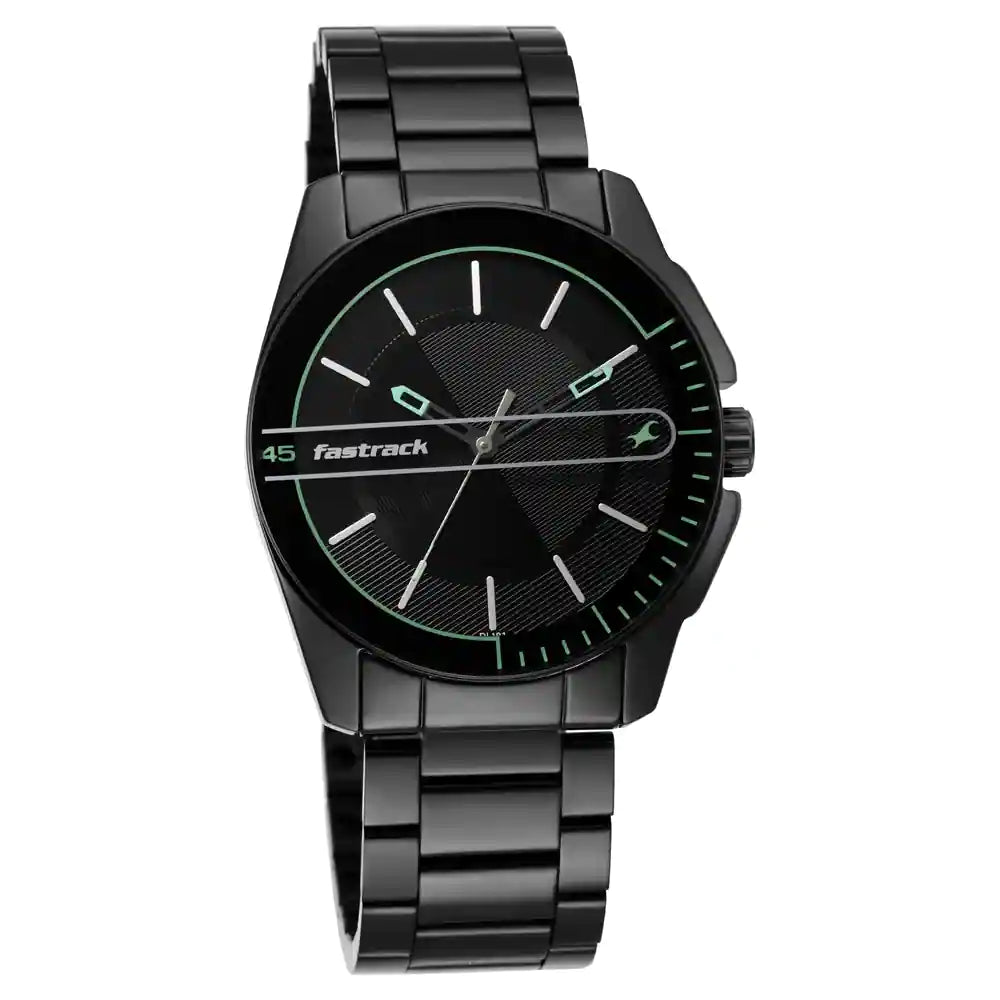 - Fastrack Wear Your Look Quartz Analog Watch for Guys With Black Dial Metal Strap