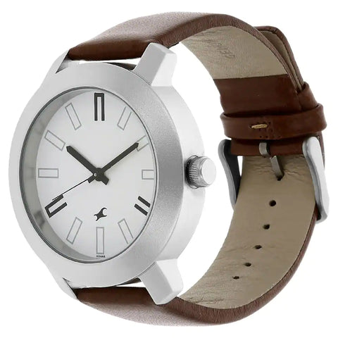 - Fastrack Quartz Analog Watch for Guys White Dial With Leather Strap