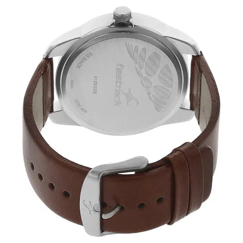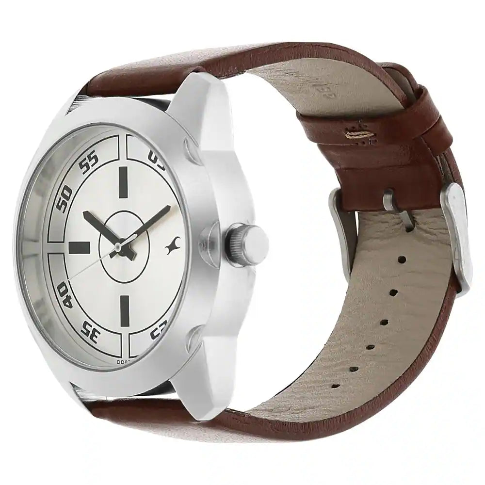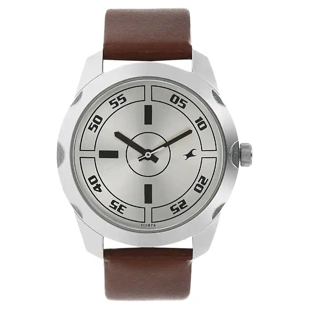- Fastrack Quartz Analog Watch for Guys Silver Dial With Leather Strap