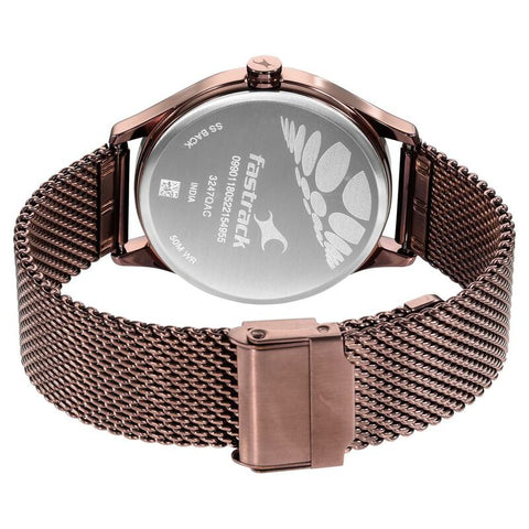 - NameFastrack Style Up Quartz Analog with Day and Date Brown Dial Stainless Steel Strap Watch for Guys