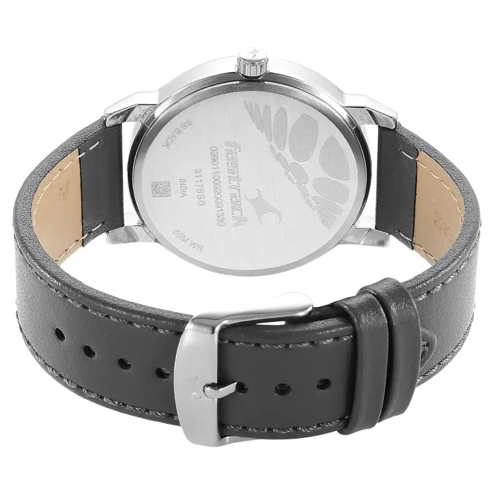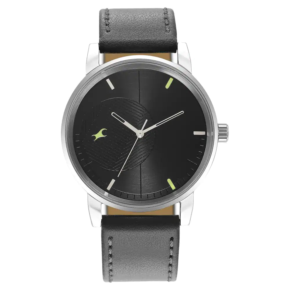 - Fastrack Stunners Quartz Analog Watch for Guys With Black Dial Leather Strap