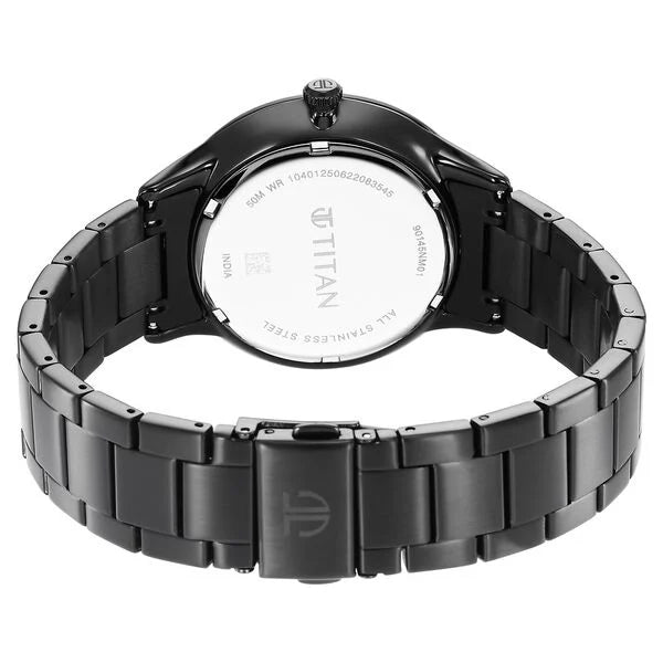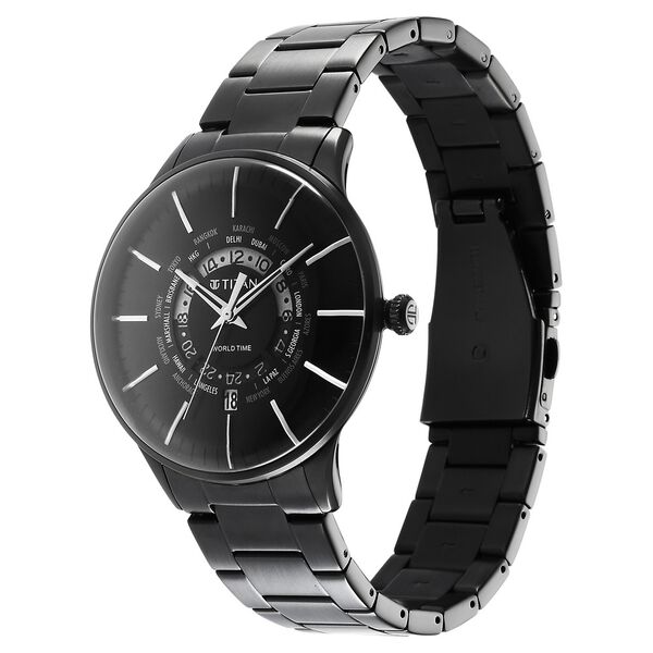 NameTitan Black Dial World Time with Date Stainless Steel Strap watch for Men