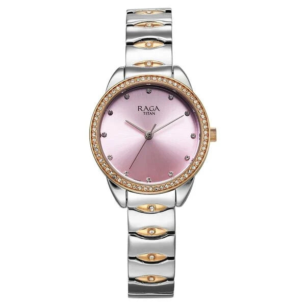 NameTitan Raga Showstopper Quartz Analog Purple Dial Metal Strap Watch for Women