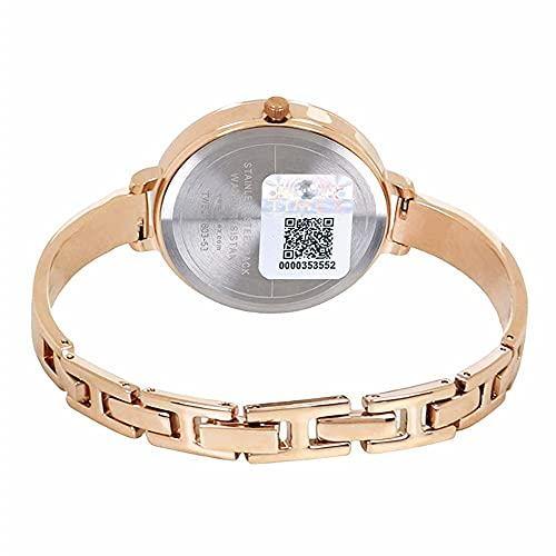 Stay fashionable with Quartz watch from TIMEX available on Amazon. This Analogue watch has Round Black dial with a dial diameter of 34 Millimeters . The Rose Gold colored straps in the watch are made of Stainless Steel . This watch has 1 Year warranty.