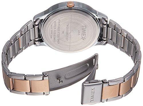 Create impression on your friends and colleagues; buy the Timex E Class Chronograph Silver Dial Women's Watch. The watch is your perfect companion for any official and casual occasions. It is a great accessory for the day or the night. It features a round silver dial and paired with a thin silver stainless steel band that adds a note of glamour. The pretty watch is designed meticulously keeping women in mind. This silver colour quartz watch can easily be worn with eastern or western outfits. The chronograph Timex women's watch includes a case diameter of 36-millimetres and the case thickness is 8.78-millimetres. The case, which is the main container of the watch helps to protect the watch and is made of stainless steel. It rests well on the wrist. It is water proof up to 30-meters. There are three sub-dials on the face of the watch. The numbering is done in stick form. The smaller dials include the date of the day, the day of the week, and a time display in 12-hour format. The needles on the watch are in bronze colour, and there are some studded clear stones which are placed at 12, 3, 6 and 9 hour intervals. The surface of the dial is protected by a mineral glass material which increases the durability of the watch and makes it scratch proof. With its magnificent design and creative craftsmanship, the watch is designed to add on a classy style statement wherever you go. The E Class collection by Timex is especially designed for ladies who love to flaunt their glamour. Buy the quartz watch for your mother or your sister and surprise them on this birthday!