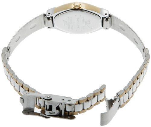 A watch that blends effortlessly with all kinds of attire is what most women would prefer for everyday use. This analog watch for women from Timex Classic series fits the bill perfectly. Furnished with an oval dial, this Timex analog watch has a black dial with minimalistic features that give it a simple yet elegant touch. This versatile watch combines the strength and durability of stainless steel casing with the sharp looks of a gold and silver tone stainless steel bracelet. A mineral glass dial covering protects the watch dial from scratches. Quartz mechanism ensures split second precision. So, you can uplift your fashion sense with this Timex gold women's watch.