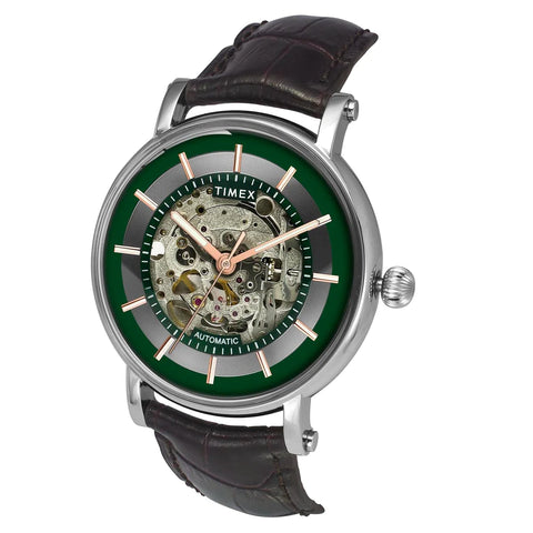 Product : TWEG16718 Case diameter : 44 mm Case material : Stainless steel Case thickness : 13.15 mm Country of origin : India Dial color : Green Display type : Automatic Glass material : Mineral Glass Power source : Battery Scratch resistance : No Strap material : Leather Strap width : 22 mm Warranty years : 1 year Watch movement : Quartz Water resistance : 30 meters