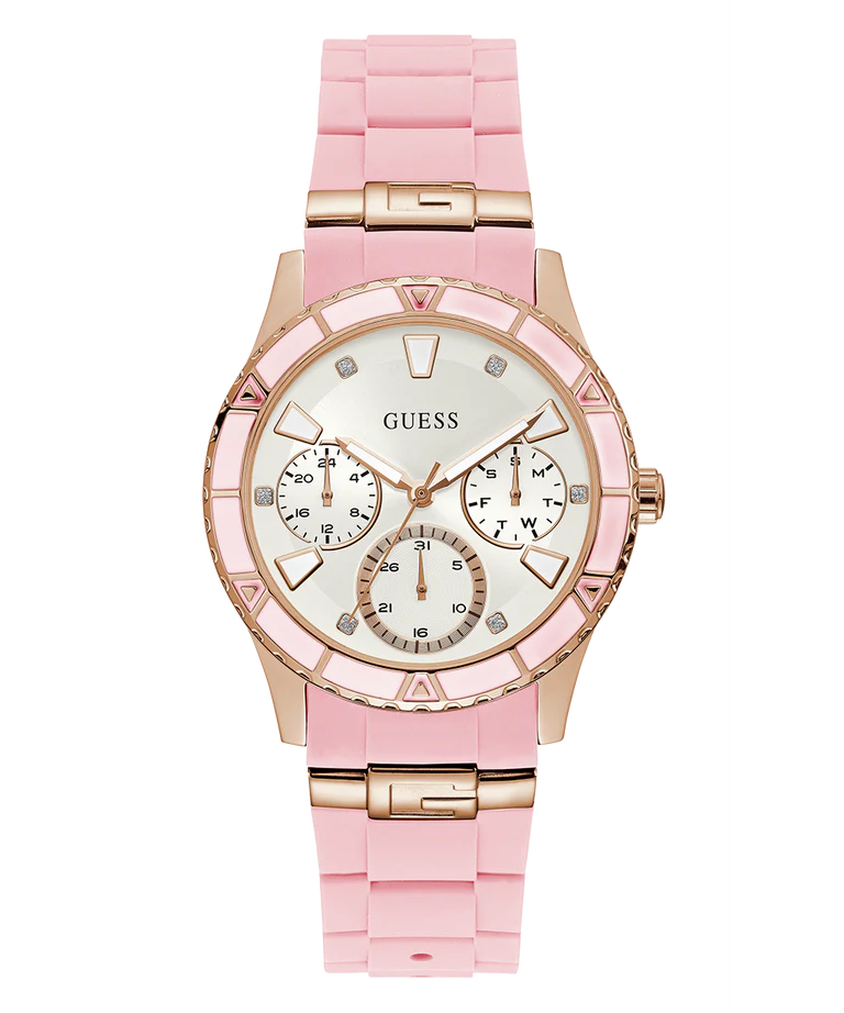 Product: W1157L6Attachement Color: PinkBand Material: SiliconeBuckle/Clasp: Strap BuckleCase Color: Rose Gold ToneCase Diameter: 38 mmCase Finish: PolishedCase Height: 10.8Case Material: Stainless SteelCase Shape: RoundCrystal Lens: Mineral glassDial Color: WhiteDial Markings:Strap and Lug Width: 20 mmWater Resistance: 30